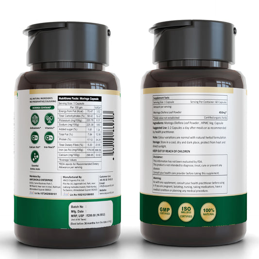 Moringa Capsules | 450 mg | 60 Veg Capsules | ISO, GMP Certified | Nutritional Supplement